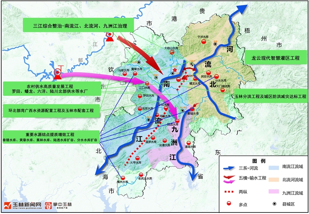 玉林新闻网-玉林日报讯(记者 唐劲梅)10月10日,记者从玉林市水利局获悉,根据玉林国家市级水网先导区建设实施方案,玉林水网将按照 “三域三系、五横两纵,九支辐射,多点保障”总体布局思路,通过重点打造龙云现代智慧灌区工程等六大标志性工程,全力保障江河防洪安澜,提升水资源集约节约高效利用水平,保护优美河湖生态环境,构建现代智慧水利体系,加强管理体制机制建设。
